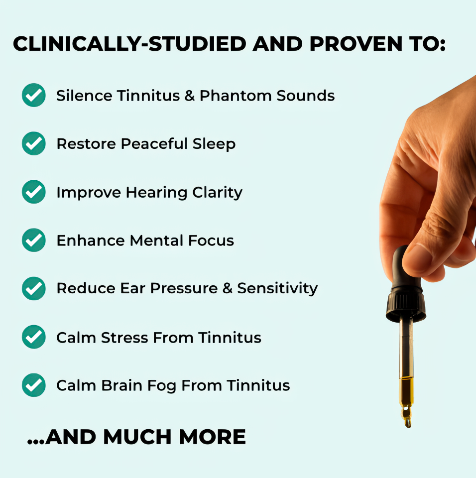 One dropper. A powerful blend of 20 nutrients that work together to calm tinnitus and promote long-term hearing health.